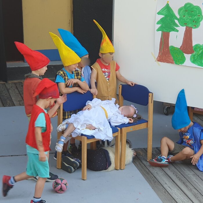 Theaterspielen macht nicht nur großen Spaß, sondern stärkt auch das Selbstbewusstsein, die Fantasie und den Teamgeist der Kinder. Wir schlüpfen in Märchenfiguren, verkleiden und schminken uns, basteln das Bühnenbild selbst und spielen Geschichten nach. Zum Abschluss laden wir Eltern, Freunde und Verwandte zu einer kleinen Präsentation ein.